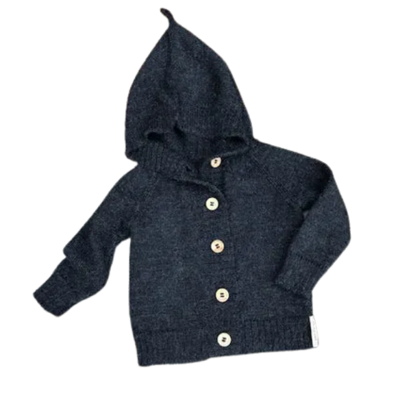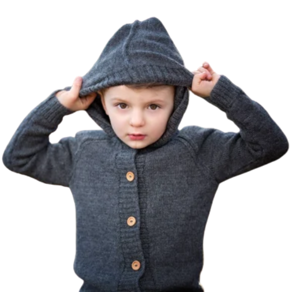 Hermosa y abrigada capucha infantil unisex tejida a mano por las artesanas de Salinas de Guaranda,