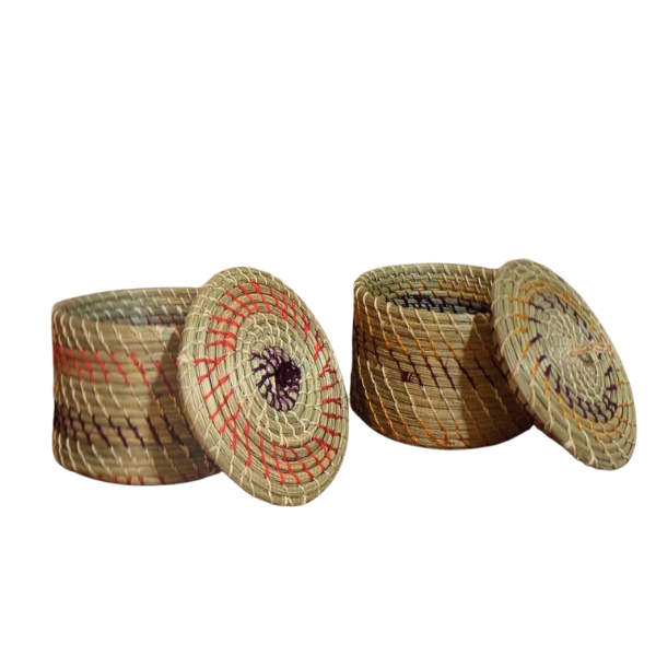 Hermoso y útil joyero elaborado a mano con fibra vegetal del páramo e hilo de cabuya por las artesanas de las comunidades de Yurauksha, Verdepamba y Pachancho en la provincia Bolívar. Una pieza de uso cotidiano en los hogares de la zona norte de la provincia Bolívar. También personalizamos a tu gusto.